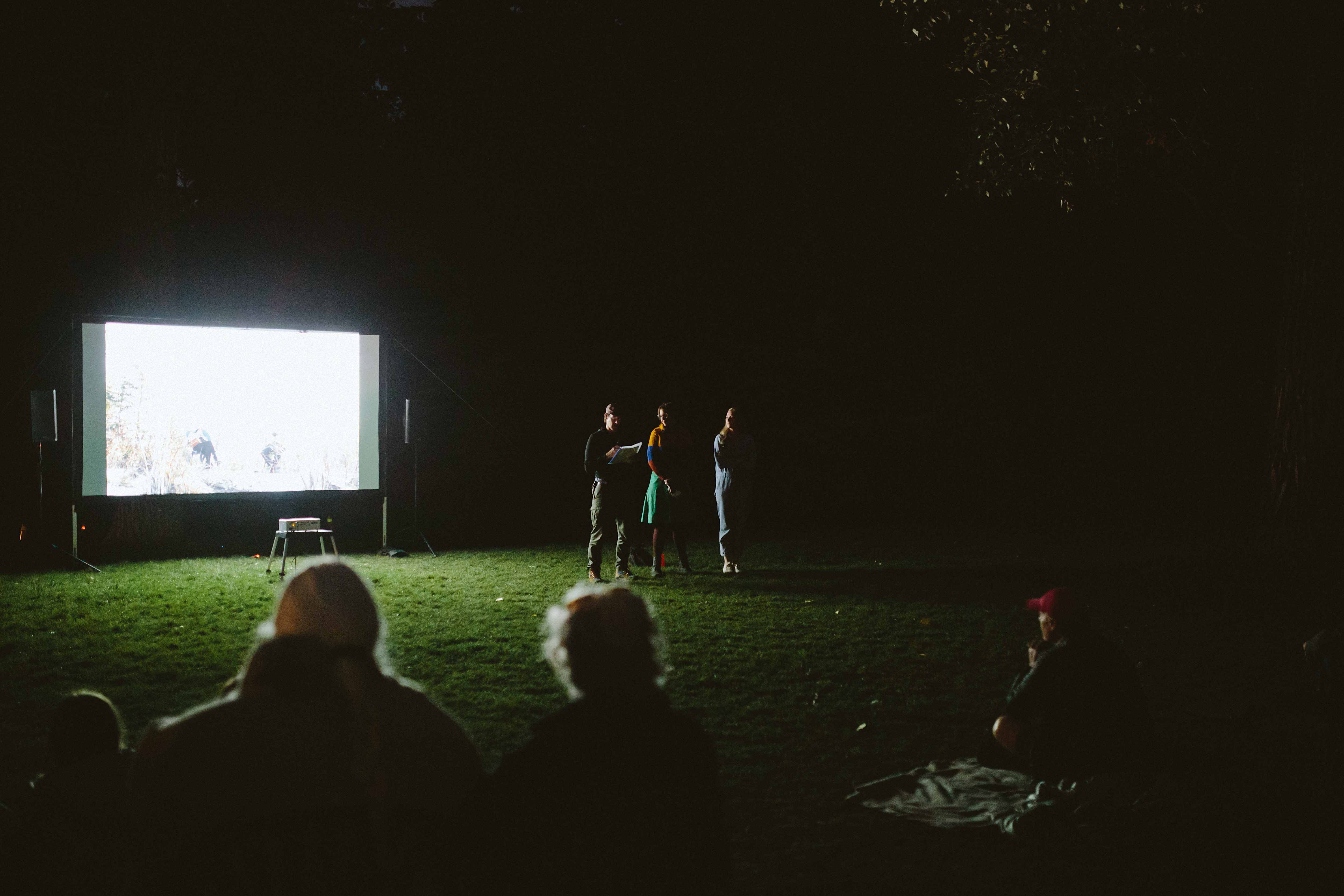 As visitors were settling on their blankets and lawn chairs, a slideshow of photos by our project photographer Mike Tan looped on the screen. Ramin and Mike hosted a Q&A after the screening.